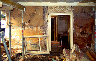 - Ausbau der Haustür und der Außenfenster, in den meisten Fällen zur Bergung und Einlagerung, in minderwertigen Fällen aber auch zur Entsorgung.