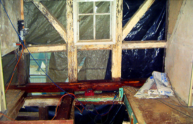 - Öffnen der Holzbalkendecken, vorerst nur in den wandnahen Teilbereichen, jedoch in Abhängigkeit von der Schadensituation auch in weiteren Anteilen,