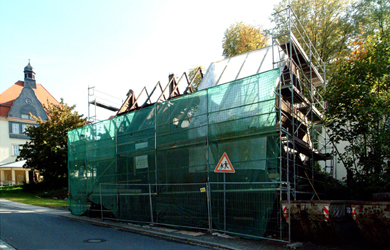 Im Ringen um die denkmalgerechte Wiederherstellung und deren Finanzierung ist es uns in Zusammenarbeit mit der Großen Kreisstadt Sebnitz, dem Bund, dem Freistaat Sachsen, der Deutschen Stiftung Denkmalschutz und der Sächsischen Aufbaubank gelungen, eine bauliche Instandsetzung und statisch-konstruktive Sicherung des Gebäudeäußeren zu realisieren. Im Rahmen einer Modernisierungsvereinbarung und mit Unterstützung des regionalen Baugewerbes konnten wir diesen Baufortschritt erreichen – neue Fenster, ein solides Dach und eine wetterfeste Fassade künden seit Anfang Dezember 2007 davon. Im Frühjahr 2008 wurden die neuen Fensterläden angebracht und der endgültige Farbauftrag erfolgte. Damit wurde der erste Bauabschnitt vollendet. Dieses Ergebnis erreichten wir nur dank Ihrer großzügigen Spenden und Ihrer tätigen Mitwirkung.