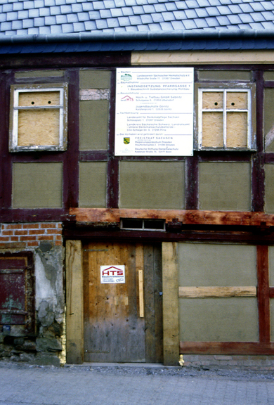Nachdem die letzten Bewohner aus Altersgründen Anfang der neunziger Jahre ausgezogen sind, konnte ein zunehmender Verfall des Bauwerkes im vergangenen Jahrzehnt nicht mehr verhindert werden. Schwere Schäden erlitt die Bausubstanz durch aufsteigende Feuchtigkeit und damit einhergehender Versalzung und auch durch Holzschädlinge. Eine Sicherung oder gar grundhafte Instandsetzung des Hauses für den Privateigentümer war nicht möglich. Seit der Landesverein Sächsischer Heimatschutz auf seiner Hauptversammlung in Sebnitz im Jahr 2003 im Sinne seiner Verantwortung für die Bewahrung und Gestaltung unserer sächsischen Kulturlandschaft beschloss, das Fachwerkhaus auf der Pfarrgasse in Sebnitz zu retten, sind nun fast fünf Jahre vergangen.