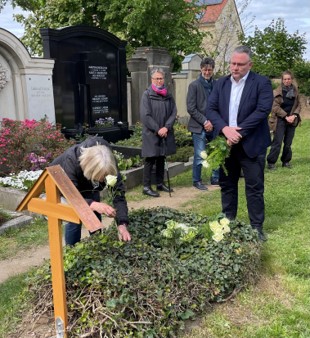 Gedenkveranstaltung zum 80. Jahrestag des Kriegsendes auf dem Langebrücker Friedhof.